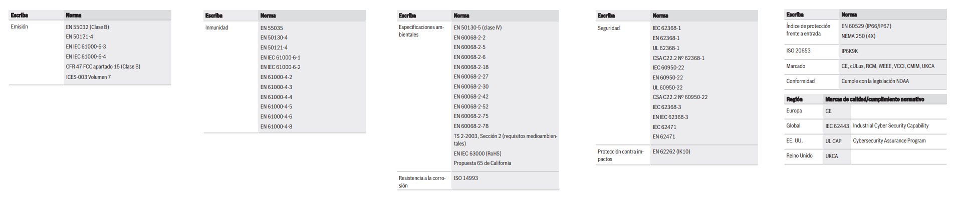 Clasificación IP: IP66; IP67; IP6K9K