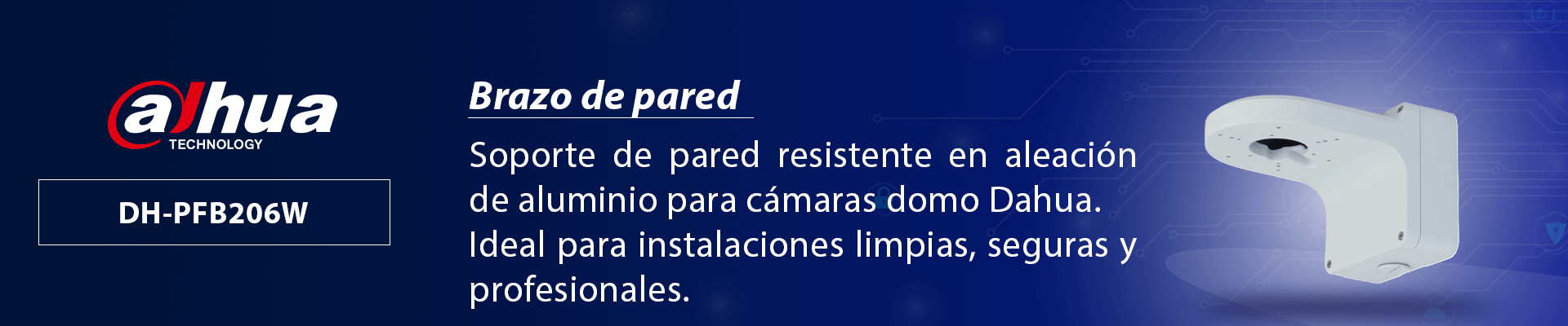 DAHUA PFB206W - Brazo de pared para cámaras domo DAHUA / Construído en aleacion de aluminio / Diseño elegante / Color blanco / Capacidad de carga 15Kg /